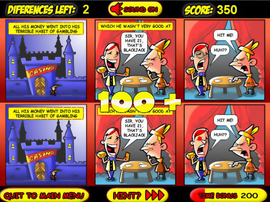 Ищите различия на картинках, продвигаясь в поисках Робином Королевства Моркови и Золота. Пользуйтесь мышью. Кликайте на трех различиях на одной странице. Если найдете различия быстро - получите бонус.